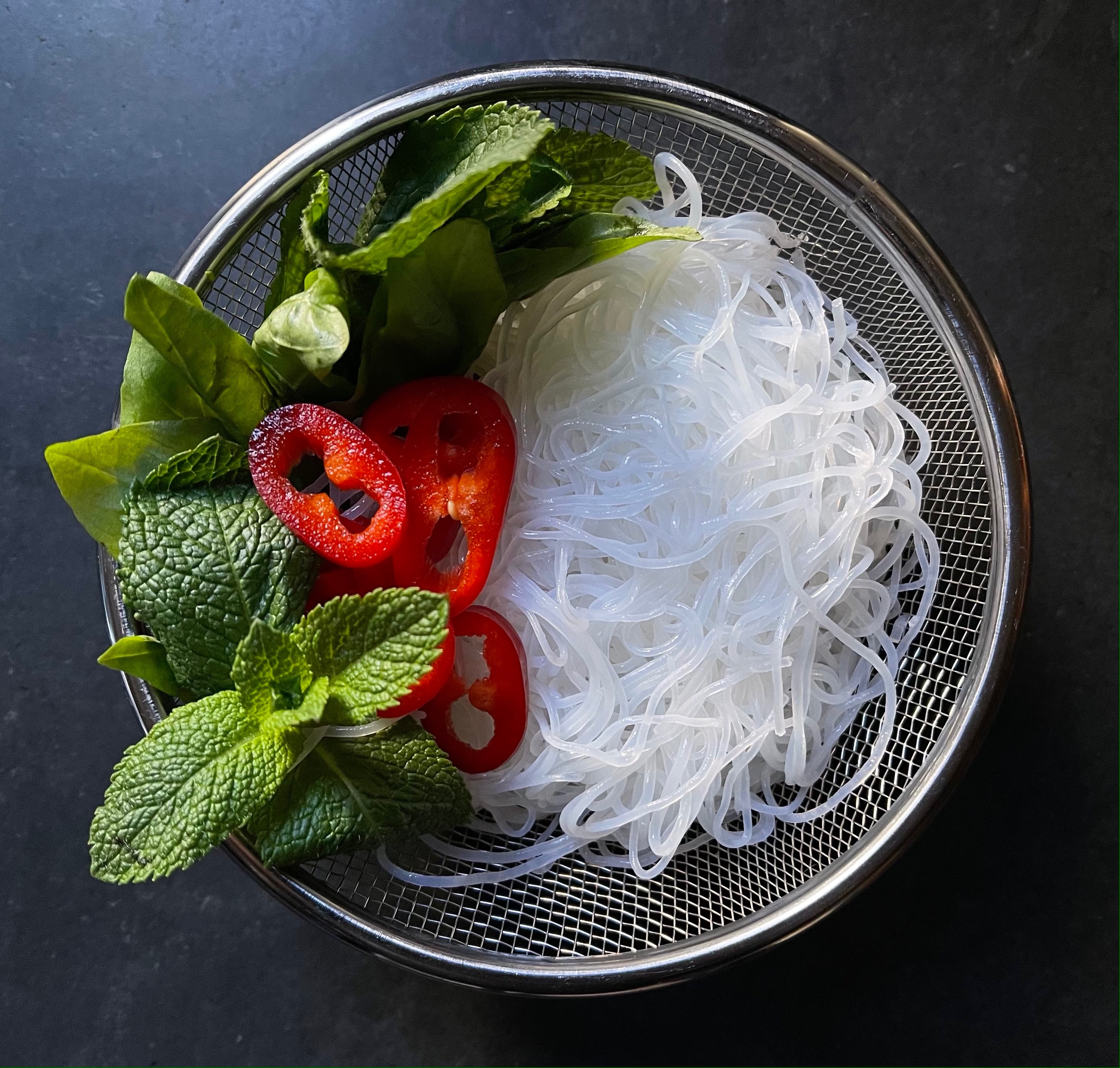 - Combine all the remaining ingredients in the same bowl and give a good toss. Leave to the side while you cook the prawns